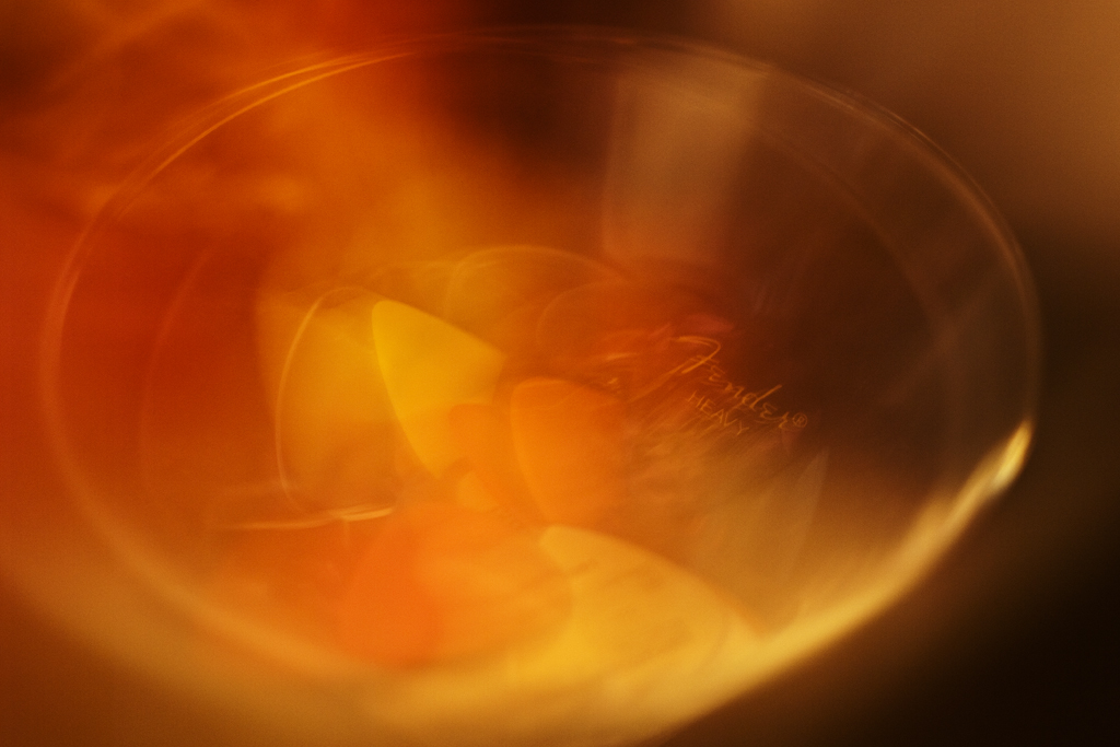 Just thought I would post another picture I took today that I like. I have a large glass that’s full of guitar pics of various size, thickness and materials. They add a lot of tonal options on both acoustic and electric guitar. This is a long exposure where basically I framed the shot, snapped the shutter and moved the camera randomly and towards the pics, keeping the camera moving until the exposure is done. It’s a technique that can be used when light is low to nice effect. Pentax K20D, Super-Takumar 50mm