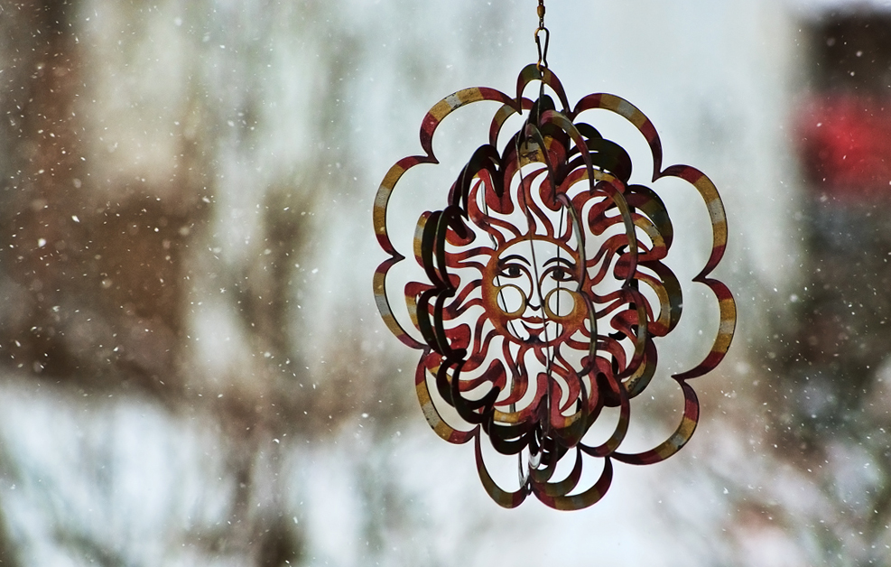 A little sun for the day, in the form of a mobile hanging from my neighbor’s porch. It was snowing again today. Soon winter will be a distant memory and the sun in my pictures will be the real one. Processed with a touch of Topaz Adjust to punch up the color a bit. Pentax K20D, DA55-300