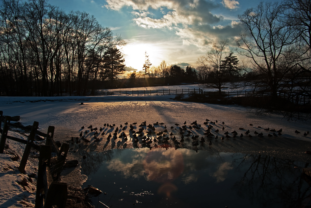 Another visit to the pond in the local cemetery today. It’s always a good place to get a shot and there’s always ducks, geese, turkeys and deer roaming around. I stuck with the ducks today. I had to deal with some lens flare in this shot and the sun is a little brighter than I would like, but “work with what you got” is what I always say. I guess I’ll have to get a Pentax DA15 Limited lens if I want to shoot into the sun more. They do a pretty good job in that regard. Zooms tend to suffer a bit with flare. Pentax K20D, DA17-70