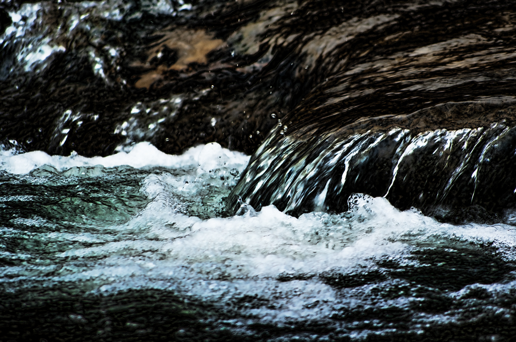 I visited a different park today for a change of scenery. But considering the time of year and the mild temperatures, everything is a little drab and colorless. I decided to focus on smaller subjects, such as this small waterfall over a rock. I know the standard thing to do for such a shot is a long exposure to blur the water and make it “silky”, and if I had a tripod with me, I may have tried such a shot. But, no tripod – no long exposures. Besides, I never would have caught the little bubbles.
