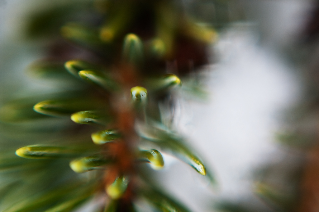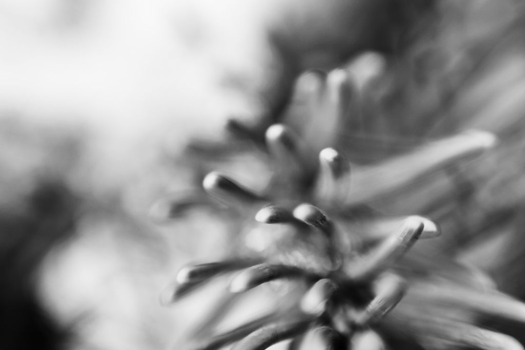The next couple of shots are with my Super-Takumar 50mm lens, reverse mounted for macro. Shooting the branches was a little tricky because there was a slight breeze. With about a 1/4-inch of depth-of-field to work with, I had to wait for the branch to swing in focus and shoot. I took a few trial and error shots to catch the focus where I wanted it.
