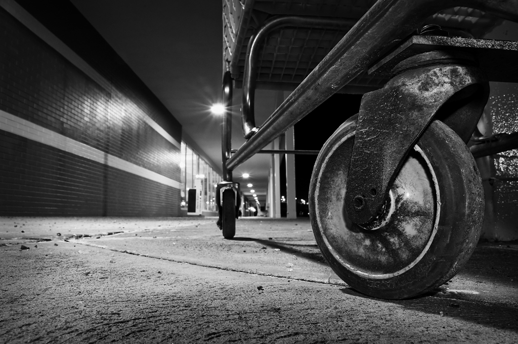 The grit and grease in the foreground wheel is pretty interesting. Definitely something I /never/ look at closely when I go shopping.