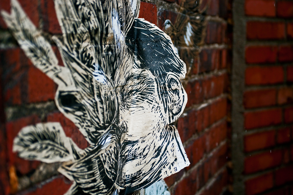 I saw this large sticker that was starting to peel off of a building and thought it could be interesting from a different angle. This is behind what was once a coffee shop. A little bit of urban art, I guess, in an alley. A rare sight where I live. even though my town has a few art galleries and coffee shops there is nothing really hip or artsy about the place. I get stares all of the time when I’m shooting pictures. It’s a bit irritating. I don’t know what they’re thinking when they see me but it’s probably something like “Why on earth is anybody taking pictures around here?” or, probably more likely, “Is he collecting evidence?”. When I shoot in downtown Pittsburgh nobody cares or notices me. I like that. Pentax K20D, DA17-70.