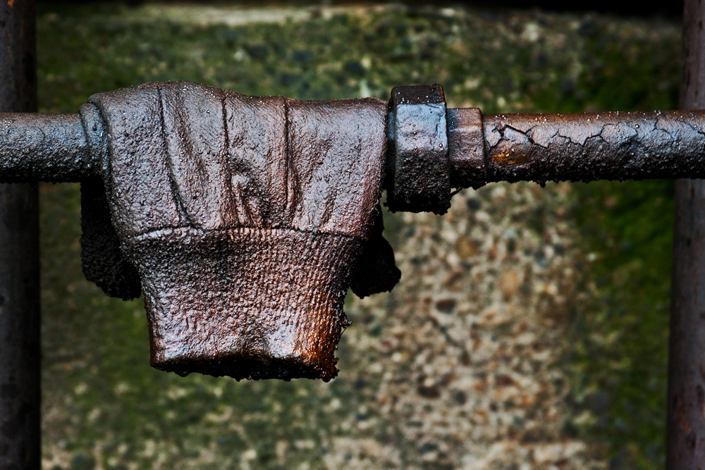 I spotted this glove in a picture I took the other day of the oil tanks and knew I had to try to get a picture of it. I went out today specifically to shoot it and I just beat a heavy rain by seconds after I got the shot. The area was kind of dark so I had to up the ISO to 800. I would rather have shot it at ISO 100 to capture as much detail as possible but that would have required a tripod and considering I was taking the shot with one foot on a broken old mattress, it would have been difficult to set up a tripod. I have been considering throwing one of those larger Gorillapods in my truck for the few occasions I think it would come in handy. I went with a color version for my 365 shot because I liked the oily sheen but I’m throwing in a black and white version also. Pentax K20D, DA17-70
