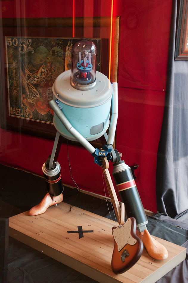 So, in a departure from my usual shots of abstracts, urban decay, and nature ;-), I thought I would actually walk on the sidewalk and shoot something. I drove through downtown just to see if I could find a shot for the day. There were some fire trucks and police cars with lights flashing because of, I believe, a gas leak in a building. Since there were more people out, especially on a rainy day, and they were somewhat distracted, I parked my truck and walked around a little. The emergency event didn’t offer any drama to shoot so I continued to browse around and shoot things. My 365 shot is at a local hot dog shop. Hot dogs grilling by the window! I initially wanted this as a color shot because of the red neon lights but the highlight/shadow difference was too much to work with. The photo really worked out when I converted to black and white using Nik Silver Efex plugin. I went with the Tri-X preset for the gritty “street” photography look. I then converted a couple other shots the same way for a consistent look. I know they look more like newspaper photos than anything artsy, but it’s a start! The last shot has nothing to do with shooting on the street but Iliked this sculpture in an art gallery because I’m a fan of guitars. An ode to Pete Townshend? All in all I have a loooong way to go in order to get decent street photos. But it’s maostly for fun and the occasional break from my usual “style”. All shots with K20D and DA17-70.