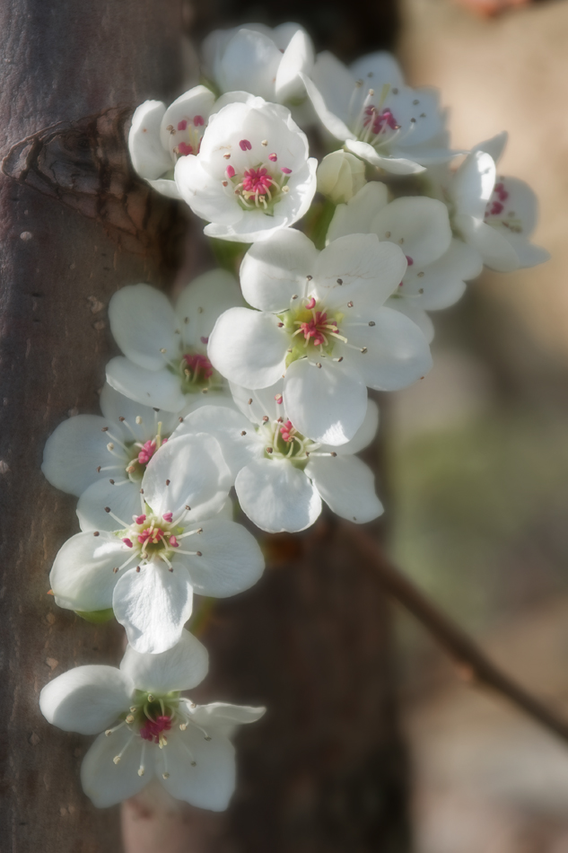 I may go overboard on some flower shots this spring because the winter felt so drab. For fans of my grunge work, don’t worry, I’ll return to it soon ;-). There will be plenty of grungy and gritty subjects to shoot in the future but I want to take a break and show a little beauty while it’s all to briefly here. I actually found these blossoms in a shopping center parking lot. The mall is about the only place in the area that has any decorative landscaping and there still are very few trees that are blossoming yet. I know it’s kind of a pedestrian subject and they’re pedestrian kinds of shots but I hope you enjoy them anyhow, at least until my next shot of a rusty bolt or something :-).