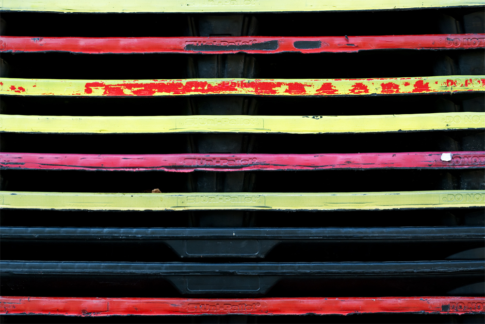 Nor can I really think of much to say today. One of those kind of days, I guess. Todays shot was taken at a loading dock in the rear of a grocery store. I was driving by and the bright color of the pallets against the black caught my eye. A simple, straightforward composition. I didn’t want to push my access boundaries so I couldn’t really try much else with the subject.