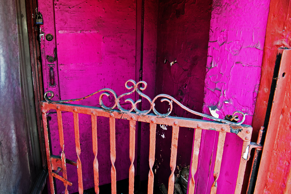 I love the gated pink doorway. It’s all pink like you would associate with a fairy princess or child’s room, but then you have these big locks and gates. I’m really amused by that image to be honest. I /really/ want to know the story behind whoever lived there.