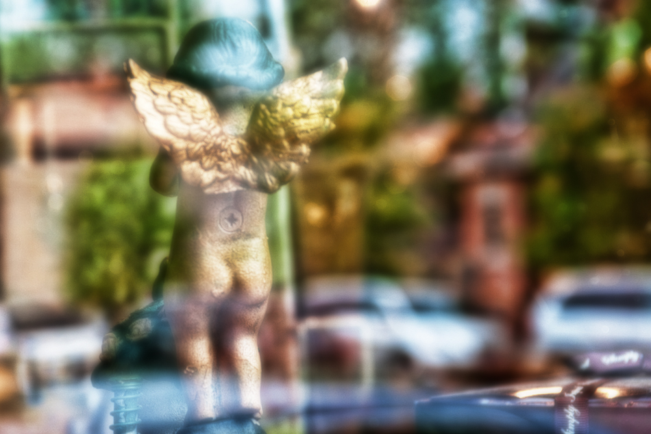 I saw this cherub figurine in a gift shop window and snapped a shot. I only took the one shot and didn’t think much of it when I did. The straight shot was decent enough but I thought I would throw a little processing fun in the works for a change. In Photoshop, I Did a Topaz Adjust layer and an orton effect layer and played around with opacity on each layer for the final balance. The good (or bad) thing when doing this type of image “enhancement” is there really is no correct final result. It is whatever you want it to be! My only regret with the shot is that I would have liked to have shot it at a wider aperture to blur the background (reflection) more. Pentax K20D, DA17-70