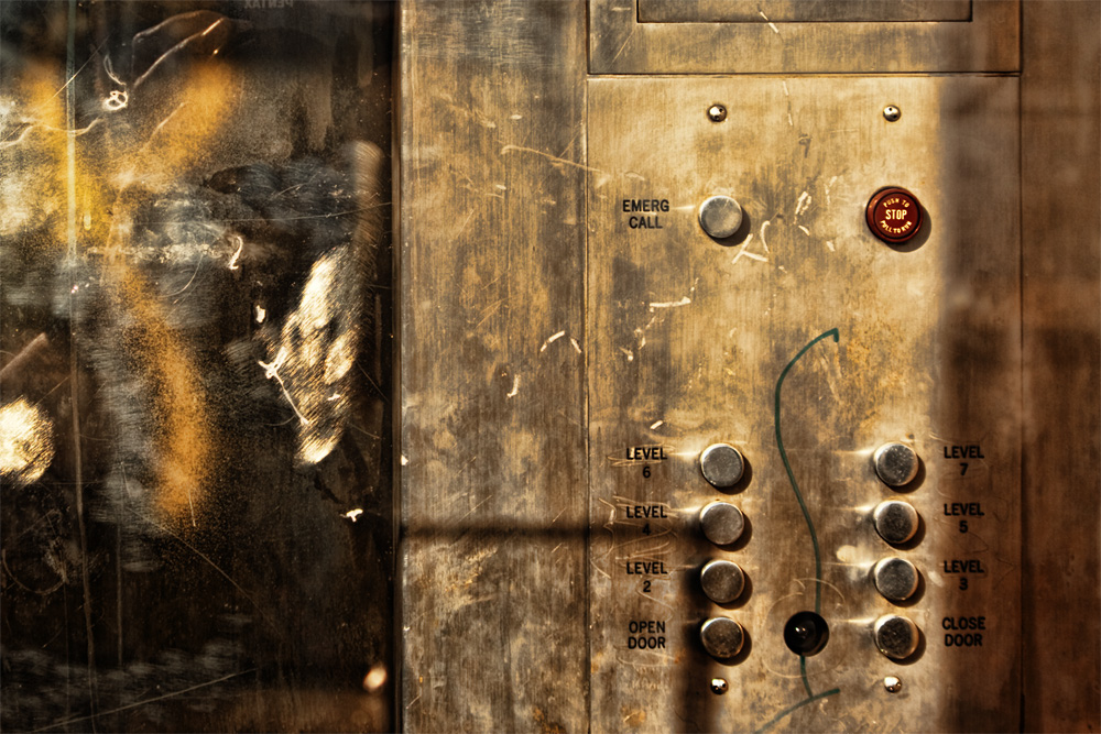 Explored around the downtown area today. Well, OK, downtown doesn’t cover that much of an area. I probably have covered the area pretty well over the last few months but I think there is always a shot somewhere. I was able to park my vehicle and look around the old parking garage that is soon to be demolished or sold or renovated or something sometime soon, depending on which newspaper article you’ve read. The late afternoon light sometimes transforms things that otherwise don’t attract my attention. My 365 shot is of the elevator in the garage. It’s a glass elevator on the street side and I was shooting through a couple layers of dirty glass or plexiglass which kind of added to the grunge. A touch of Topaz Adjust blended in during processing enhanced the colors a bit. Shot with my Pentax K20D and DA55-300. Other shots taken with the Da55-300 and DA17-70.