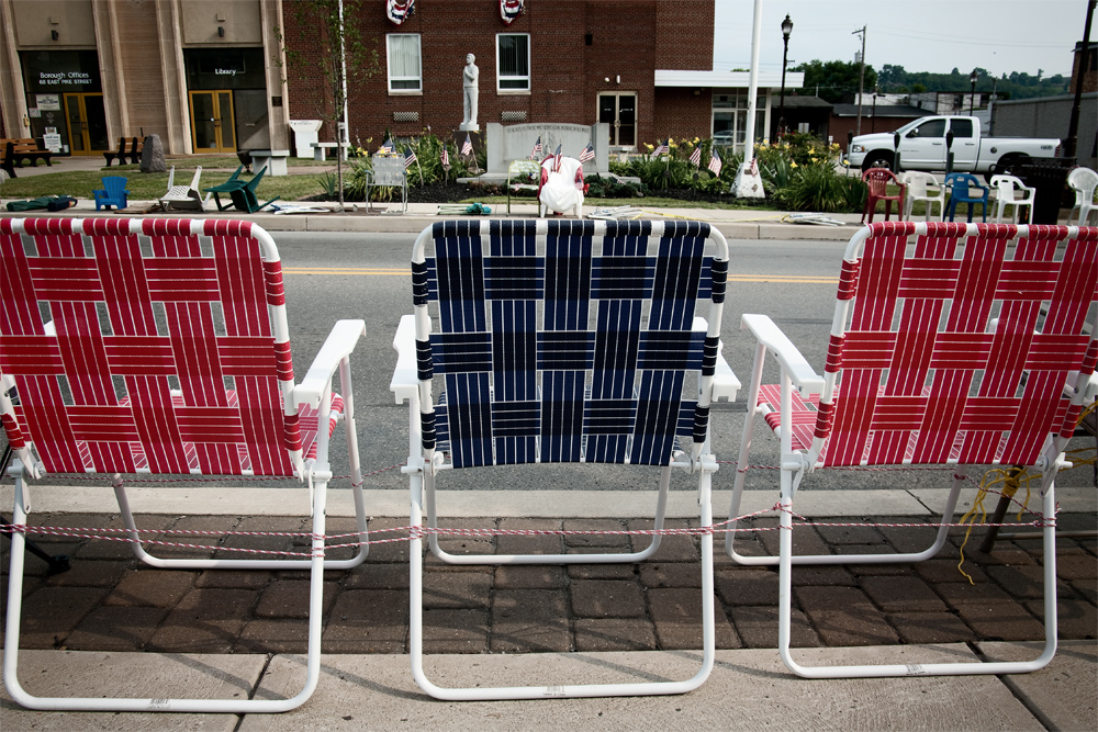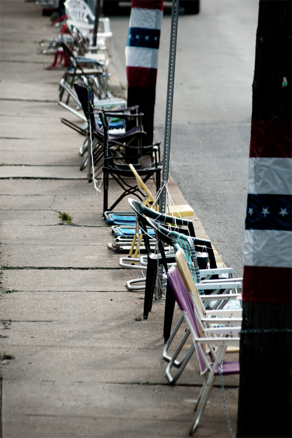 The neighboring town of Canonsburg has an annual Fourth of July parade and the citizens have a tradition of placing chairs along the route to reserve a vantage point for the festivities. The chairs are placed as much as a week in advance. Now I see that some are roping off large areas also, much to the chagrin of local business owners, I imagine. I guess it’s a good clean fun thing and its put up with out of tradition. As for the parade, it’s nothing exciting. Your usual small town parade. When I was younger, I once drove a convertible in the parade with a couple of waving beauty queens sitting on the rear seat. Wooo…fun stuff. All with Pentax K20D and DA 17-70 or DA 55-300.