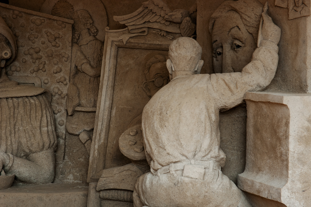 Pittsburgh has an annual regatta around the 4th of July holiday. There are various events each year varying between high wire acts to hot air balloons. Every year they have powerboat races on the rivers. I haven’t visited the regatta in quite a few years since I was usually working and couldn’t go if I wanted. This year I am not working and my wife and I were in the area so I thought we would swing by to see if we’ve been missing anything. From what we saw, not much. Like most “festivals” there is plenty of food and music, although there weren’t any bands playing when we were there. I don’t have a boat or know of anyone that does, so I can’t participate in the “hanging around in a boat” thing. So we walked through and managed to catch a few boats racing, which was somewhat cool. Other than that it was really hot out (see squirrel picture below). The main land attraction was a large sand sculpture that was constructed over the weekend. It was impressive, I must say. I am a fan of artistic things so I guess I would be attracted to something like that. As I usually do, I took a few detail pictures but never bothered to shoot the overall sculpture! I always do stuff like that. So, here you go. Sand sculptures, speedboats, a big guy, a squirrel and a pigeon! None of this is really the type of photography I like to do but a change once in a while is always nice. Pentax K20D, DA17-70 and DA 55-300.