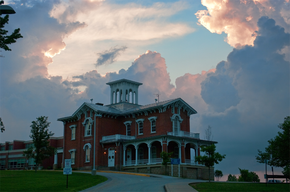 The 4th of July in the USA. Besides hotdogs the usual subject to photograph is fireworks. This is the first time I ever bothered to shoot fireworks in about twenty years. the last fireworks photos I took were on Kodachrome 64 at the city of Pittsburgh. Pittsburgh still puts on an impressive display but I stuck around the small town today. We have fireworks in the city park but I decided to shoot from a high school parking lot. A nice vantage point but you miss the feel of being right underneath the explosions. I thought I could get a little bit of the town skyline in the shots but things didn’t quite line up that way so I just focused on the explosions. In the end, I don’t think the photos do any justice to the fireworks. But, it was nice to view them anyhow. I also took a nice shot of the old historic section of the school on my drive to the parking lot and thought I would post it also. Pentax K20D, DA55-300 (fireworks), DA17-70 (school).