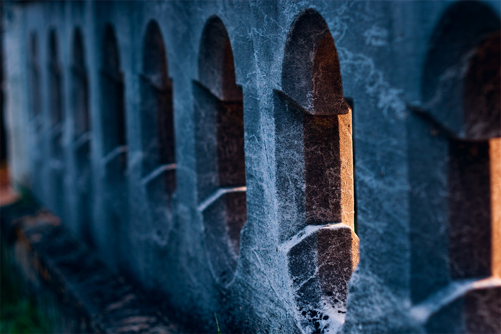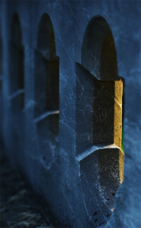 Visited the cemetery again today because I was trying to find an animal to shoot. The animals in the cemetery are accessible since they are used to humans, which makes it somewhat easier to get photos. I wanted an animal to continue my intentional camera movement experiments and I wanted something else that was moving also. There were some geese at the pond, a few turkeys, and plenty of deer. Well, a LOT of deer. There were little fawns everywhere. A new generation ready to get fed from the cars. Anyhow, the photos just weren’t working out and I went back to normal, straightforward photography. I was ready to leave after getting a picture of a fawn when I saw this wall and how the late afternoon sun was shining through it. All wall shots with Pentax K20D and Super-Takumar 50mm. Fawn taken with the DA 55-300.