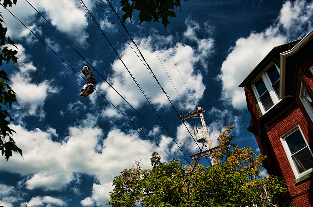 Another day of watching my truck repair bill climb. Sigh. So with everything so crazy you just have to laugh and relax. That calls for lunch with my wife on the southside of Pittsburgh. After lunch on such a fine day, we enjoyed a little stroll and, of course, I took a few pictures. I have a couple of color shots and a couple black and white ones today. My 365 photo is of hanging shoes. I know, I know…yet another photo of hanging shoes. Doesn’t everybody do that? Yes, probably. So shoe me! 🙂 As for the “Party Hats” photo, I took that through a window of a lounge that wasn’t open. I don’t want anyone to think I was chugging vodka in the middle of the afternoon.