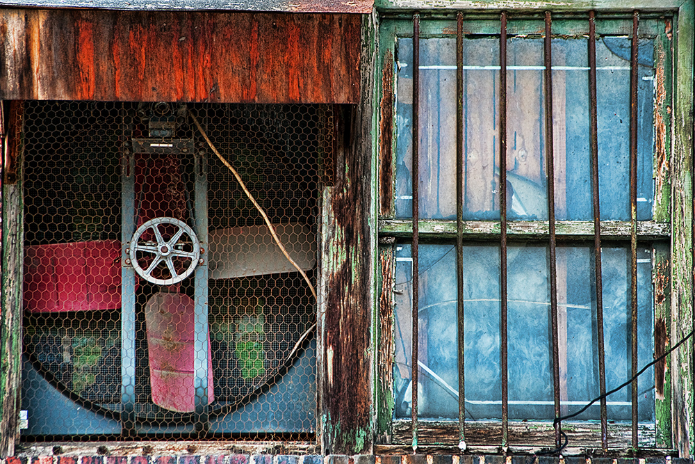 One thing I like to do sometimes is look at photos I have taken at or near 100% and see if I can find pictures within the picture. When I come across what could be a potential composition I have to decide if a crop is viable or if I have to try a re-shoot. A re-shoot isn’t always possible if it’s a fleeting subject or if it’s just physically impossible to get the closer view.  In yesterdays photo of the boat I thought the window in the background building with the fan in it had potential and obviously a crop was out of the question so I went out and shot a closer photo of only the window. I like it and am glad I took the time to try a re-shoot. There is a lot of texture and subtle color there! It was a little high up the building and although I couldn’t find a vantage point at the same level I was able to get a shot from far enough back where  I didn’t get too bad of a tilt that couldn’t be corrected.  Pentax K20D, DA 55-300.