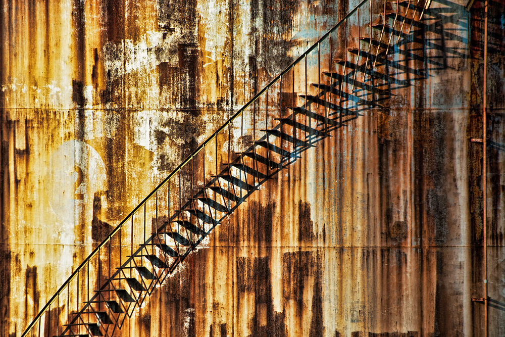 I know you’ve seen those pictures of oil tank stairs with the long curvy shadows from strong sunlight creating an abstract pattern. I always wanted to try a shot like that but I never really come across the scenario. Well today I got a chance and the results aren’t quite what I imagined. I saw some tanks yesterday when I took a different route to my hotel and I liked how the late afternoon sun hit them. I thought I would try a photo today since it was basically sunny all day. Well, it was sunny, until I started to head to the tanks, then clouds started rolling in! Plus, I didn’t realize from yesterday that I saw them from a bridge over railroad tracks with nowhere nearby to park on the ends of the long span. I looked for an alternative vantage point but there really was no close access to get the right angle. So I explored my options and noticed that the bridge was fairly new and had a nice wide berm on the ramp at just the right spot to grab a photo of this older tank. I waited for the sun to reappear, a quick pull over and snap with a preset camera and I’m done! I would have liked longer, curvier shadows but I’m in West Virginia not Nebraska so the hills prevent getting any real low sun sidelighting. So I couldn’t get anything too abstracty but I like the patina of the tank anyhow. Pentax K20D, DA 55-300.