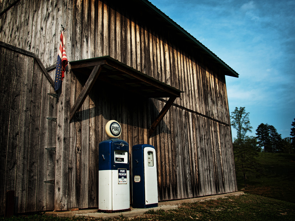 I thought a postcard post title is apt for my postcardy image today. I saw these gas pumps yesterday and kept them in my mind for a future subject. But today as I was driving by the owner of the property, Sue Moore, was outside chatting with a friend so I asked if I could take a few photos. She was very gracious and allowed me to shoot away. They have a very nicel farmhouse and grounds with choice “antiquities” lying around the acreage. When I got to the barn with the pumps, I was glad to see the old flag. It adds a nice extra element to the photo. For processing, I played around with curves and levels a little, added a touch of Topaz Adjust and finished it off with a slight vignette. I mistakenly did a 4:3 ratio crop in ACR because I forgot to reset it after working on a photo yesterday, but I decided it worked well and kept it. While I was there, I shot a few other things also. All with Pentax K20D, DA17-70.