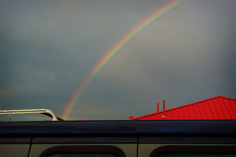 It seems that every time I see a rainbow and want to take a photo of it I am in the most un-photogenic places. Todays photo was taken in a mini-mart parking lot as I stopped for a coffee this morning. I may have been able to drive to a better location but it was a fleeting moment so I thought it was best to capture it. Actually this photo looks better than other rainbow photos I have, taken over shopping centers and landfills. One of these days I’ll get a beautiful rainbow over a flowering meadow or seascape photo. Pentax K20D, DA 17-70.