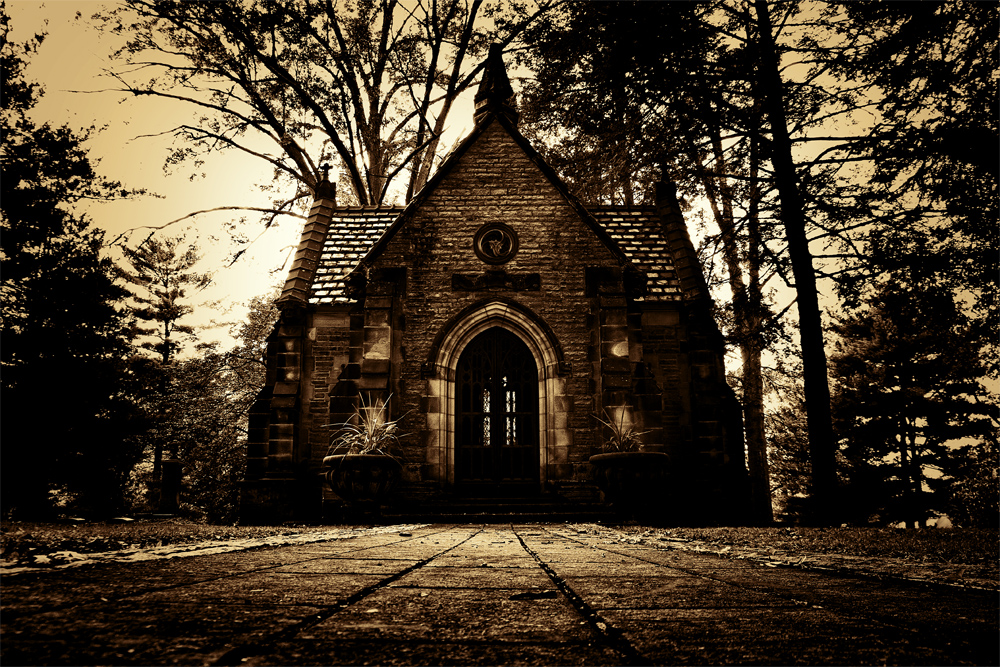 As if it wasn’t enough pressure to come up with a somewhat interesting photo every day, with my blog being featured on WordPress Freshly Pressed today I feel like the spotlight is on me now. I was at work and decided to check my emails on my phone and noticed a large number of notification emails about my blog. So using my handy WordPress app, I checked my site stats and noticed my views had skyrocketed. Whoa, what’s going on? I soon discovered that yesterday’s post was featured in Freshly Pressed. Of course it was a post of some flower shots and it didn’t really showcase my usual far out antics 😉 . Cool nonetheless. Well, it was cool until I realized the photos I had taken today up to that point were totally lame. Egads! Talk about pressure! The whole world is watching now. I tried to shoot some small waterfalls on a creek near work and those shots just didn’t work out. The creek area was too cluttered and the lighting was lousy. But if that’s all I had then that’s what I will use, I figured. But as I was starting for home I remembered a large old cemetery nearby that I always wanted to explore. It’s a huge centuries old site and I knew there would be some old textures and details there. After I drove through the large iron gates I traveled down a lane and spotted this nice stone building. The backlighting just made the scene pop and added a bit of “creepiness’ that I like in such shots. I decided to enhance that factor with a toned black and white conversion and a heavy vignette. Pentax K20D, DA17-70.