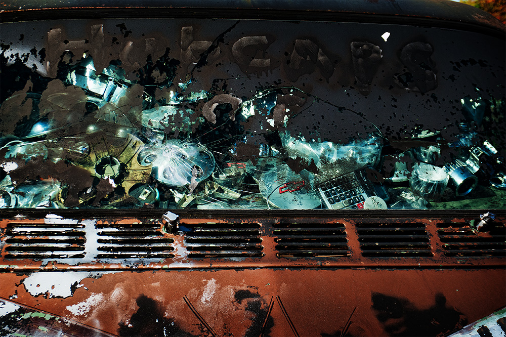 I like to work both ways. Sometimes I know I need a wide-angle lens to record what I see and sometimes I’ll try a wide-angle to see what the camera sees. Todays photos are the result of the former. I just saw some things and shot them. Pretty straightforward. No optical trickery. I swung through a parking lot of a flea market that looked like it hadn’t been operating for a while. Just tattered tarps covering tattered stuff. There really wasn’t anyone around that I knew of but as much as I wanted to snoop around for photos, I stayed on the outskirts so no one would think I was trying to steal any junk. Pentax K20D, DA17-70