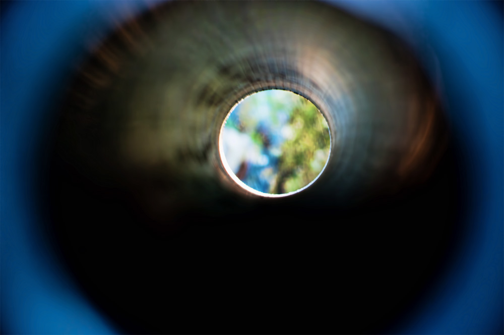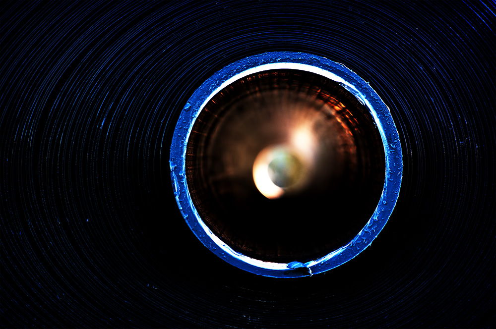 I was waiting for some fog to clear and frost to melt this morning at work when I found myself next to these large rolls of plastic. I liked how the morning sun was lighting the other side of the tube and created nice reflections on the black core. Since the rolls are 23′ long, selective focus was the key. For my 365 shot I focused on the plastic and for the other shot I zoomed in some and focused somewhere in the tube. I don’t think I have very many abstracts with circles since I usually focus on angles and lines, so a chance for something different. Pentax K20D, DA55-300.