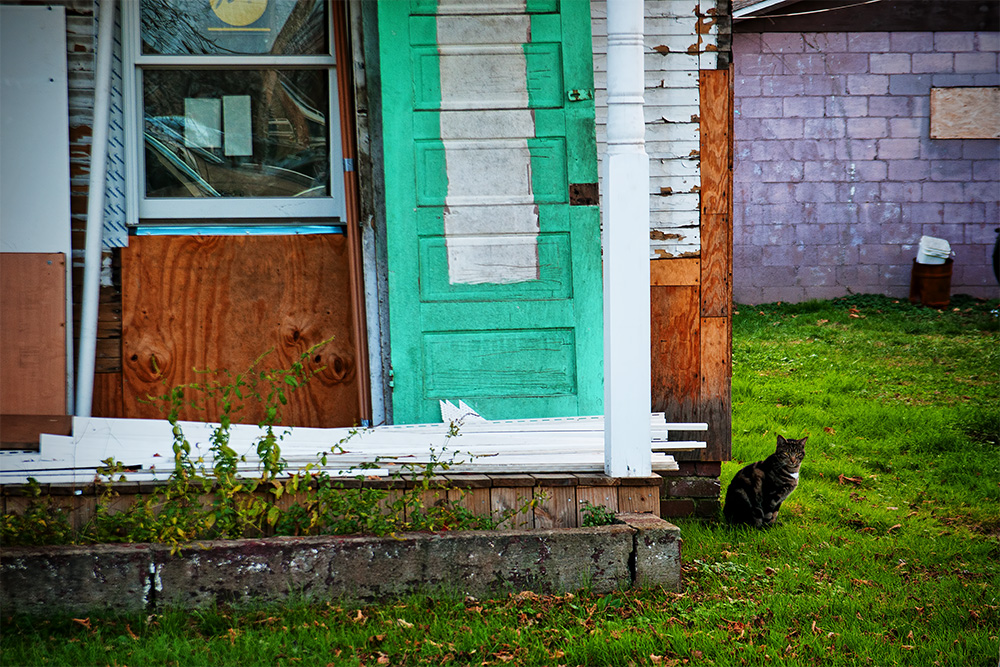 After work I took a drive through an urban area on the way back to my hotel. I visit this area a few times a week for photo subjects since it is easily accessible and in between work and my lodging. The actual business area is relatively small and there is a commercial strip on a busy road. But it’s the neighborhoods that hold the details. Consisting of older homes and run down, closed businesses that have been abandoned long ago. I try to keep an eye out for color, lines and textures, for not only the current day but also future reference. Sometimes the lighting isn’t right and I know where to go when I get the opportunity. Other times I just see something and shoot right away. Todays photo was one of those times.