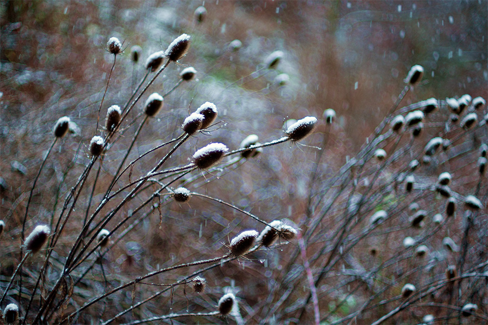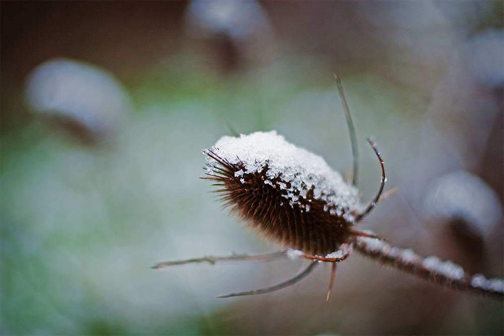 After I did my 365 shot today the rain changed over to snow. I thought that would be a good time to drag out the Super-Takumar 50mm lens and take a few wide open bokeh shots. These photos were taken behind a shopping plaza. Enjoy!