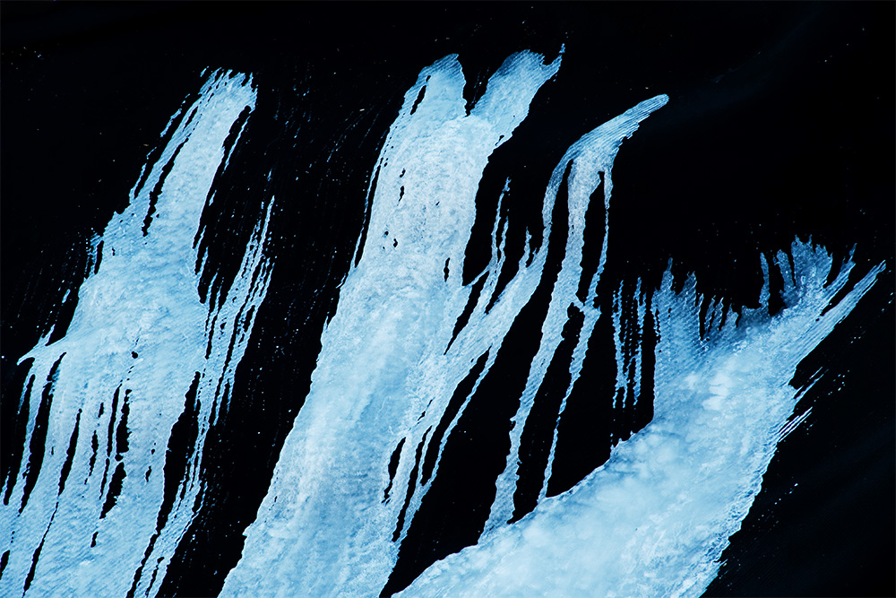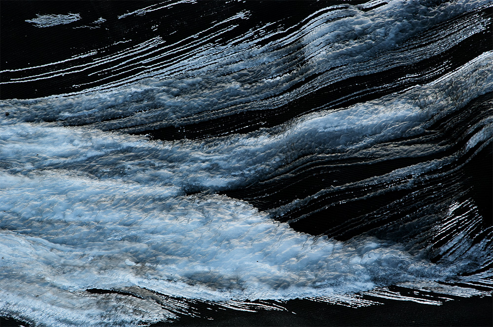 Speaking of normal, ice is pretty normal lately with the cold temperatures. The ice in these photos is from water that was flowing through black geotextile (a synthetic filter fabric used in construction) and freezing overnight creating an ice flow from an invisible source. The contrast between the ice and fabric along with the ice picking up the blue daylight resulted in some nice graphic abstracts. Pentax K20D, DA18-135.