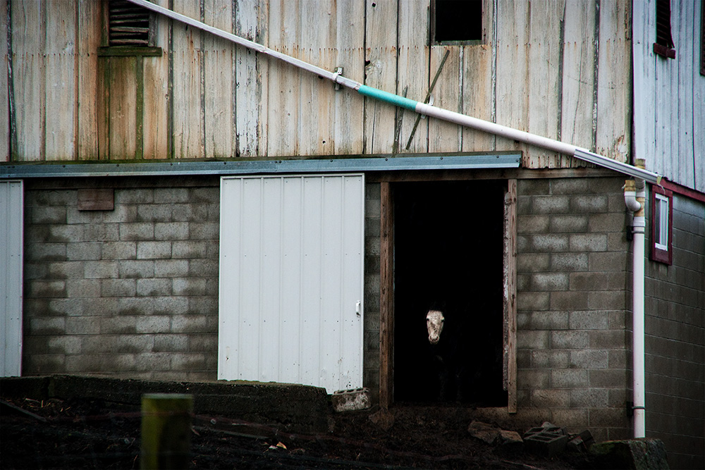 Unlike the portraits I took a while ago for 365-129, I didn’t have a nice sunny spring day to work with. It was dark and rainy today so I couldn’t fudge too much on exposure. I just set the ISo at 800 and left the lens at f/5.6 and drove through the same area as those previous shots hoping to catch some kind of rural life. These farms are on narrow rural roads just outside of town but there is an amazing amount of traffic, and it goes fast. Since there are very few places to stop my vehicle, I often have to shoot from the road. After carefully checking my mirrors and looking ahead for oncoming vehicles, I can just about stop and grab a real quick shot before there is a car approaching at a high rate of speed, with not much room to go around me. So I’ve learned to preset my camera and work quick when I’m in the area. I win some, I lose some that way but, thankfully, no accidents. Pentax K20D, DA18-135.