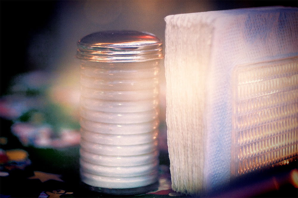 These photos are the best I could do today. Let me rephrase that – the best I could do with what I did. I didn’t get around to taking a photo until late today. No big deal, it was just a holiday thing, running around doing errands with my wife, shopping, a late lunch, and in general having a nice Saturday. So when I thought about getting a photo is was already dark out. Since we were in the area, I thought about swinging through a nearby town, where I usually find something funky to shoot, hoping to get some kind of “Christmas scene”. But the town was dark and drabby with very little holiday “cheer”. Nevertheless, I parked the car and took a quick walk around the block and the best I could get was some window shots inside a dark, closed diner. It probably only took me a few minutes before I was back in the car and headed off for another errand.