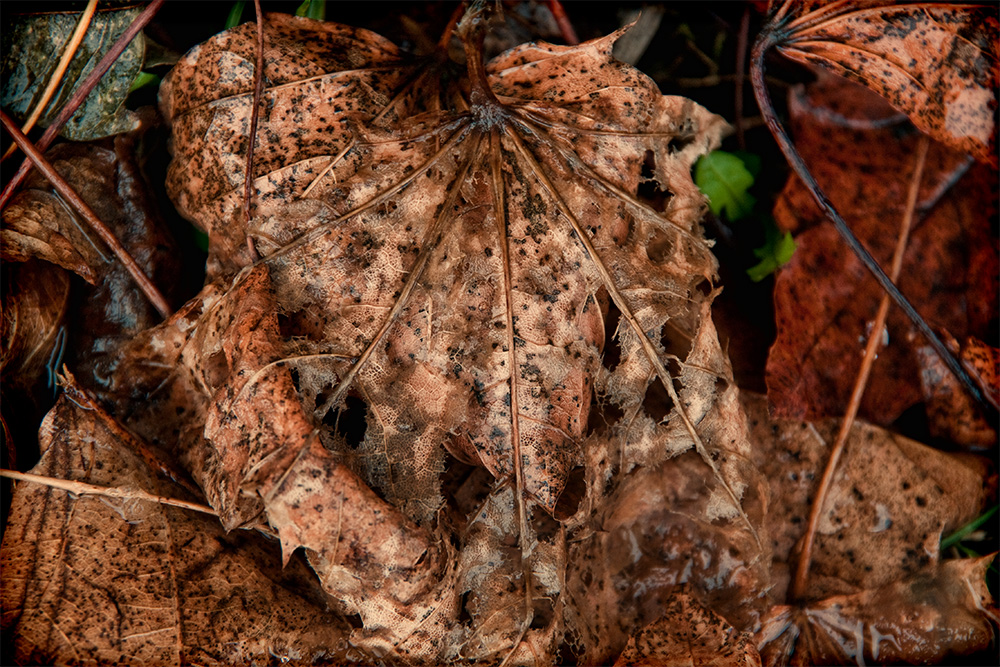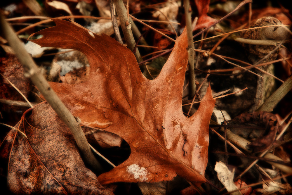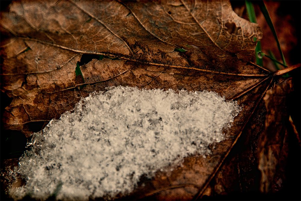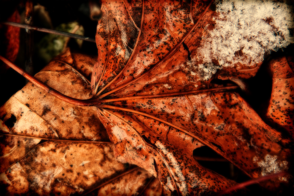 Now for my version. We had a little snow yesterday and I noticed the wet dead leaves in my yard this morning. I like the rich brown color and textures. Too bad I don’t own a proper macro lens because it would have been nice to get even closer to them. Processed with a little warmth and added grain. I also added a touch of orton effect to No.1 and No. 4. Good thing I didn’t clean up the yard! Pentax K20D, DA18-135