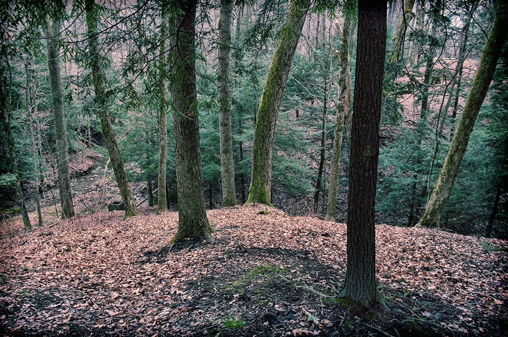 You are entirely too hard on yourself…this is a great shot, love the layers of texture…leaves, moss, the depth of the valley, the path..not to mention the great trees. What an awesome park.