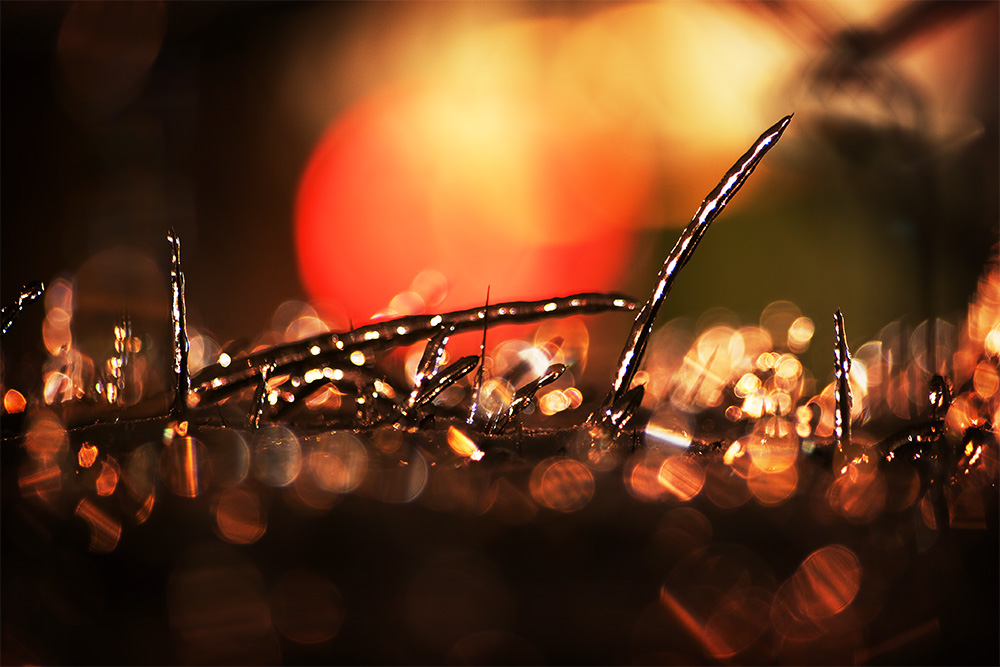 My yard is elevated along my driveway and I thought I could get a low angle shot by shooting from my driveway. But I have a chain link fence in the way and in order to get under the fence I had to lay on the sloping yard next to the drive. It was frozen snow so I didn’t mind that so much, but doing that threw off the angle I wanted. Since it was so dark and a long exposure was needed I also had to figure a way to steady the camera. I grabbed the cheap tripod that I carry in my truck and had to think of a way to pull it all off. I ended up just laying the tripod on the slope and basically using the ball head for the support.  My angle was still a little too low but I tried to compose a shot anyhow to see what would happen. Manual focus was a necessity because AF would have been too difficult in the low light along with trying to focus on the slim blades of grass. In the end, I didn’t quite get what I intended. I would have liked a few more blades of grass sticking up and a little bit of a lighter background. What looks like a blazing sunset in the background is just a light from a sign. But considering what I went through, I’ll take it. Pentax K20D, DA55-300.