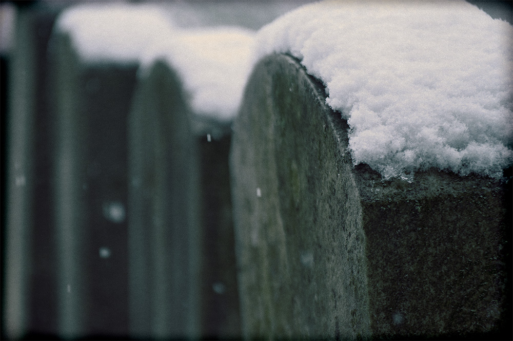 In response to my last post….we got snow! Not a major amount but it was snowy and cold enough to feel like winter for a change. So in order to take advantage of it, I thought I would try to take some pictures while I was out today. I figured I would visit the city cemetery to grab some shots since it’s not too far from the grocery store I was headed to anyhow. Regular readers will know that I hit that cemetery often for photos because it’s nicer than the city park and offers better textures, details and nature photo opportunities. I usually try to shy away from outright “cemetery” shots, instead focusing on details, but today I thought I would shoot a few tombstones while I was there. The snow was so pretty I could have walked around there for hours but unfortunately I did have groceries to get! I used my Pentax K20D with Super-Takumar 50mm and DA17-70 lenses for these shots. I used different processing depending on what I felt worked best for each one. Hope you enjoy them!
