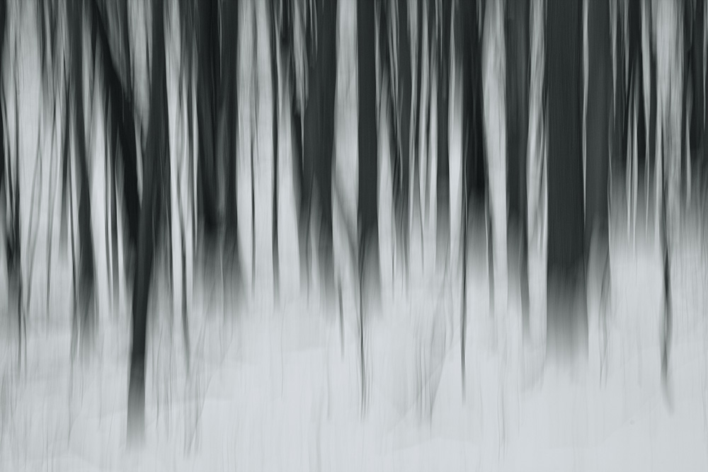 I don’t get asked too often! Basically I move the camera in the direction of the blur I want. For this shot and similar ones I use a shutter speed of approximately 1/8 to 1/2 second, depending on the amount of blur, sometimes you may want an even longer exposure. I compose the shot as if I’m simply taking a picture of the trees and as soon as I snap the shutter I quickly pan the camera downward during the exposure. Panning down keeps the bottom of the trees somewhat recognizable – if I panned upwards the tree trunks would have blurred over the bottoms and I would have had a bunch of lines with no “end” point, although that may be desirable at times. Depending on your camera, you may or may not want to keep any shake or vibration reduction turned on. It takes a lot of trial and error – just keep experimenting until something works right – vary the shutter speed or direction of pan, etc.