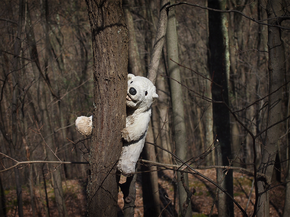And finally, a bear in a tree that someone made an effort to put there as the tree was on a downslope from the road:
