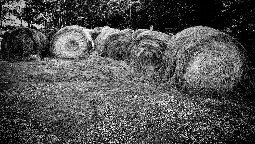 For some reason I usually don’t crop a photo different from its native format. On rare occasions, I may do a square crop but I seldom do a “freeform” crop, even though it may be the best thing for the composition of the photo. But after I processed this image and saw all of the wasted space above the bales I wondered what it would look like if I simply cropped it out. Guess what? It worked! Looks like I won’t be ruling that out in the future.
