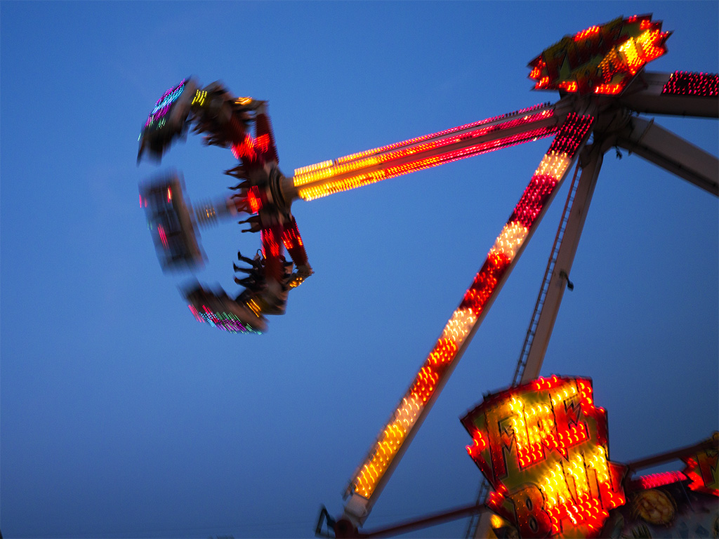 As for these pics, I have to say these are some very brave (crazy?) souls on this ride. I know I’m not about to be tossed around on any “temporary” mechanical monster. No way. I’ll have a candy apple and watch, thank you. These pics, as usual when I’m shooting “free from”, didn’t quite turn out like I planned but I do like the results…..somewhat.
