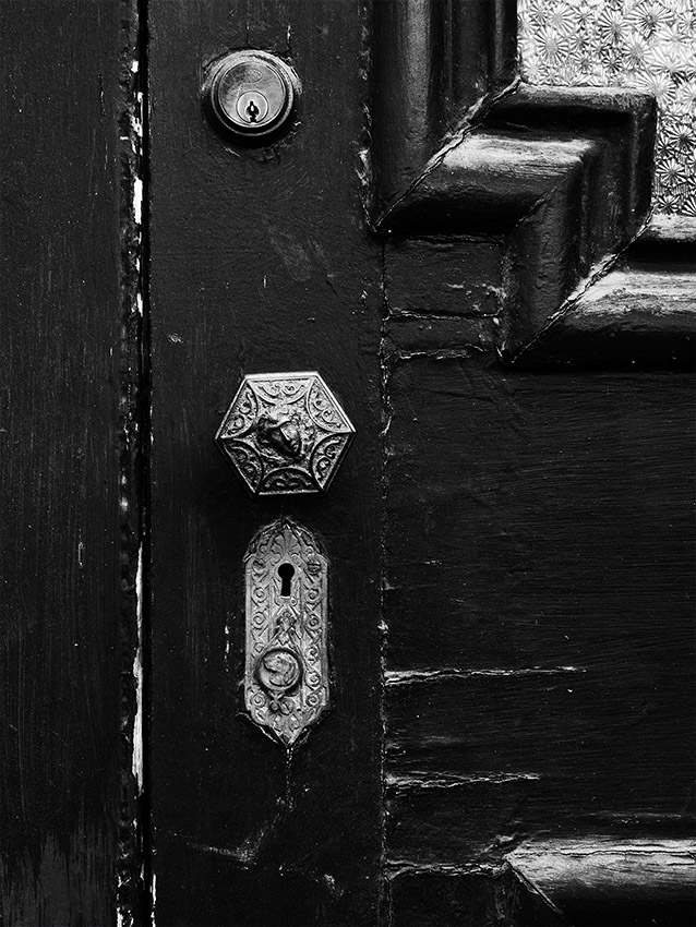 I would have liked to keep both of these shots the same for consistency, either color or black and white, but they each worked better in separate mediums. The door knob looked best in black and white as the door was painted a dark olive green, which didn’t look too exciting. The second shot of the doorbell looked best in color because of the warm tones of the wood. There you have it!!