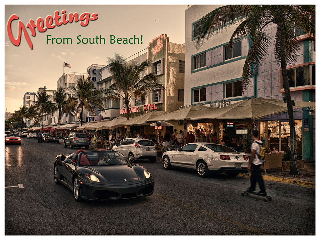 When I’m browsing on dpreview.com and checking the latest camera gear discussions, I often like to check the photo challenges on the site and see if I have a photo that meets any of the themes available for submission. As long as there is no date taken requirement, I’ll just go through my archives and find the one that best fits. I do it entirely for fun and generally don’t take it too seriously. I often fail miserably but have had a few successes, landing in the top ten on occasion and even a first place finish. So when I saw a photo challenge for a postcard style photo, I immediately went to my files of Miami photos. At first I was going to use a beach scene but I thought that was too normal, so I decided to use this street scene in South Beach instead. Just like to be a little different in my approach –  something that doesn’t always work in my favor, but it’s just for fun so, who cares?