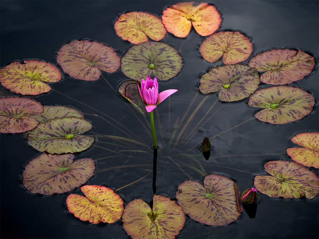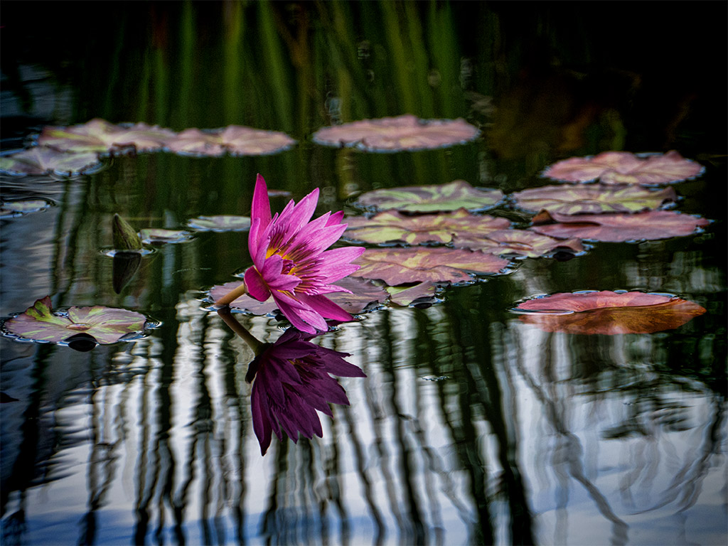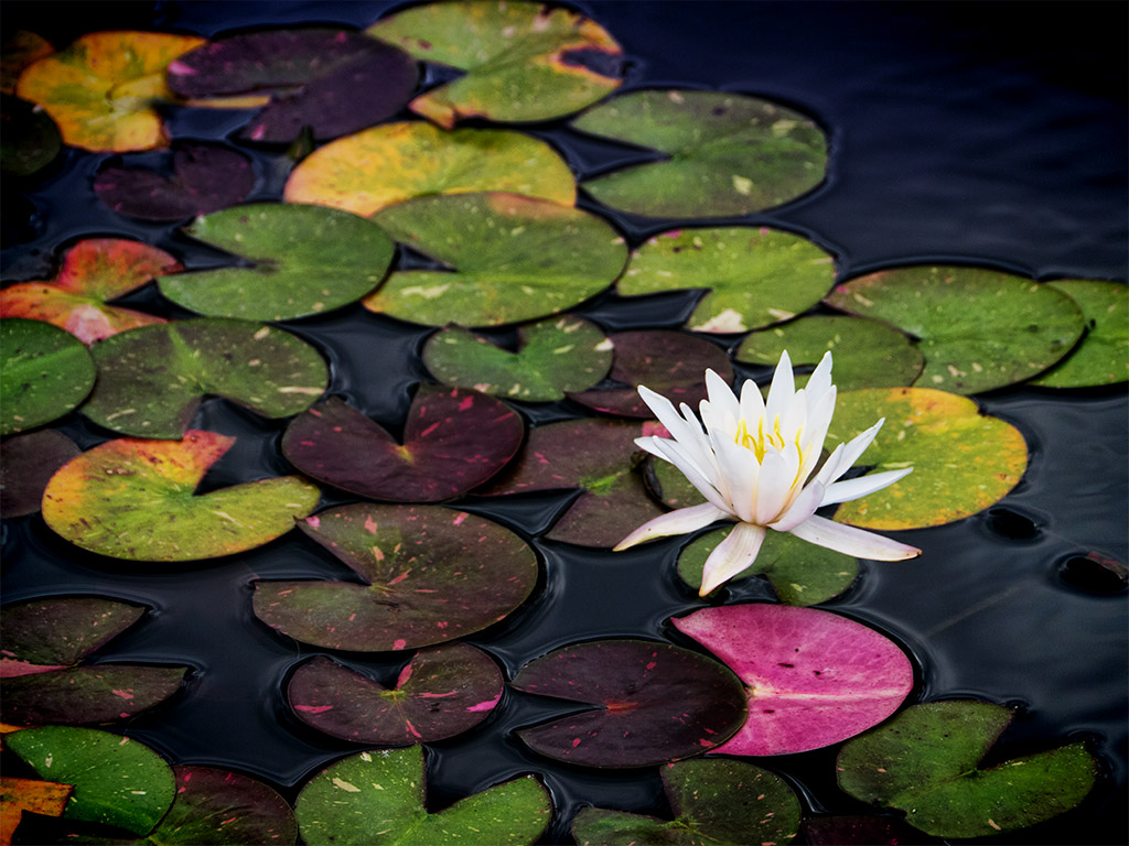 It was a nice cool, almost fall like, evening and the area was bustling with people. Joggers, students, sports teams practicing, and even a wedding at the conservatory. Anyhow, I started top walk past the building when I spotted some nice landscaped ponds with a wide assortment of water plants (and fishies!). Since the colors grabbed my eye, I started shooting some plants and never really moved on from there. The light was getting low anyhow and since I was on the verge of needing a tripod, I just explored the flowers as much as I could. Oh well, maybe some B&W grit next time.