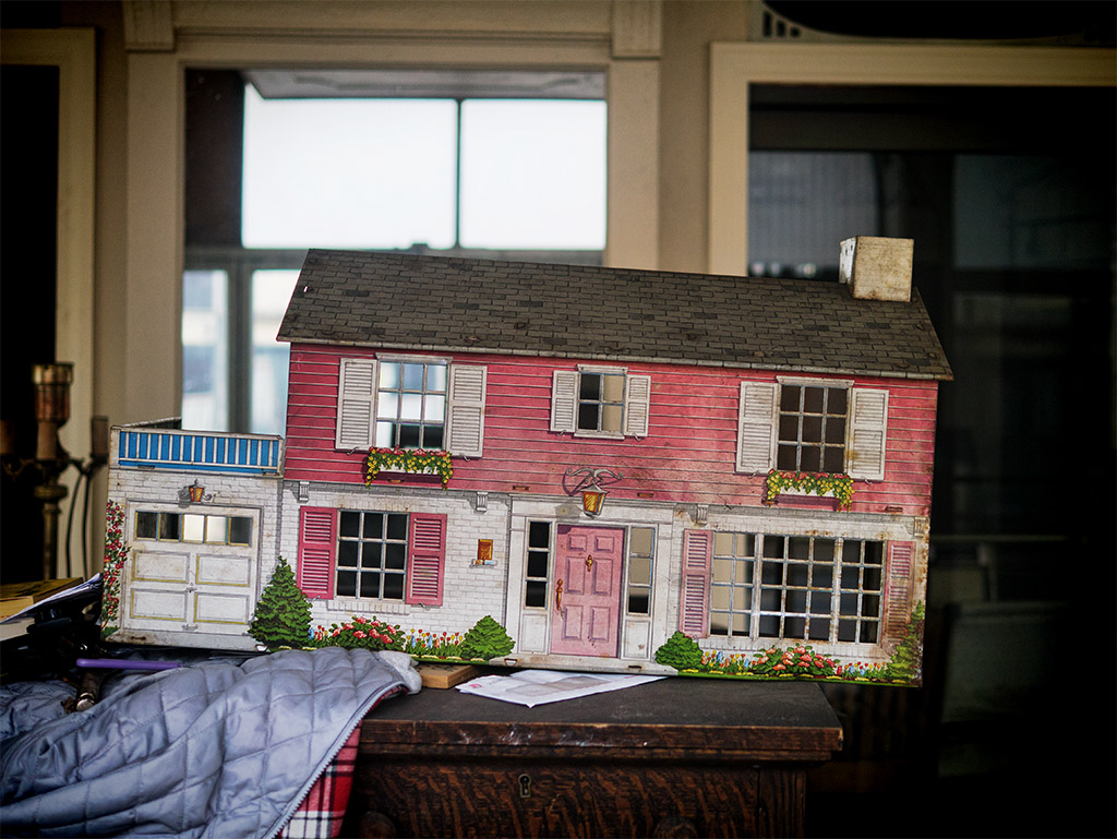 I shot a number of things through the windows but I liked this photo for some odd reason. The house was lit with the light from the large window and just seemed to glow amongst its dusty surroundings. That and the fact that it was placed randomly on top of the jacket and other items makes me wonder about the chaotic nature of this kind of business. What kind of people run these shops? Do they make any money? Was it thriving at one time and just went downhill or was it always this way from day one? I know I can’t explain.