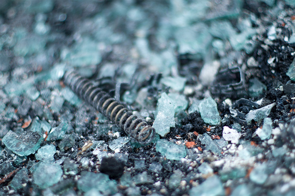 How about a few shots of what was a piece of construction machinery that burned up? The machine was hauled away but some debris remained. Melted glass (in a nice aqua color, I might add), burnt rubber, and steel. And while we are at it, who can’t resist bokeh? Everybody loves it! So when you add bokeh to trash it becomes…….magical! Well, okay, I’m pushing it a bit but I have to pump up my work somehow. 🙂