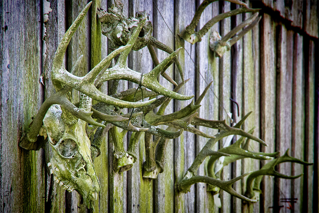 A roadside find I came across today. These skulls and antlers were on the side of a barn in West Virginia, which was literally right next to the road . Besides the collection I really liked the matching patina of the bones and barn siding. They all kind of blended together, which made it a little difficult to photograph. So I just focused on the nearest one and hoped for the best.