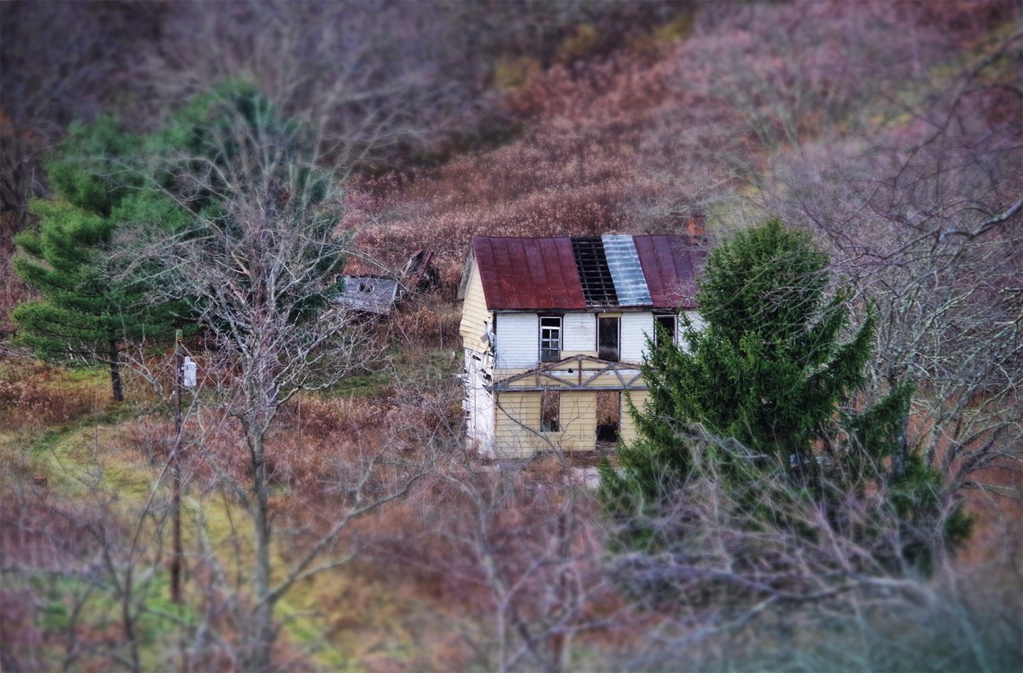 My camera has a filter setting for this effect, as do many others. I play around with it once in a while, mostly when I’m bored, but I rarely take a photo with that in mind. Maybe next time I am on a top floor of a skyscraper. But no skyscrapers can be found out in the country where I took this shot. I snapped this photo of an old house on an adjacent hillside and afterwards wondered how the effect would look. I knew that it wouldn’t transform the image into “Smallville”, since the elements weren’t in place for that effect, but I thought it may add a unique look to the photo. And that it did. More like a weird tilt-shift thing but fun nonetheless.