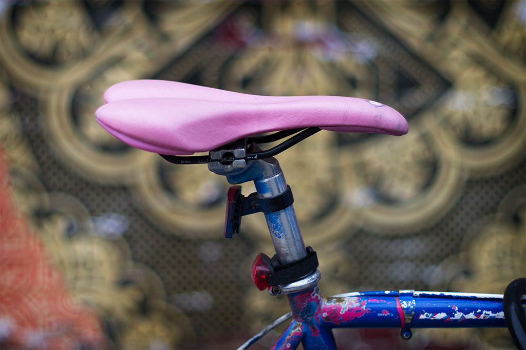 Speaking of “bokeh”, I do like to throw the word around on occasion, and so do many others. I don’t want to try to define the word because there have been many discussions about the topic all over the web, but I think the first shot of the handlebars shows the quality (good or bad, it’s all subjective) of the Pentax-A 50mm f1.4 lens that I used to take the shot, considering the background was a very busy looking mural on a building. Quality, in my opinion is the key word. The gradation from in to out-of-focus and how the out-of-focus highlights and lines, in this case, are handled.