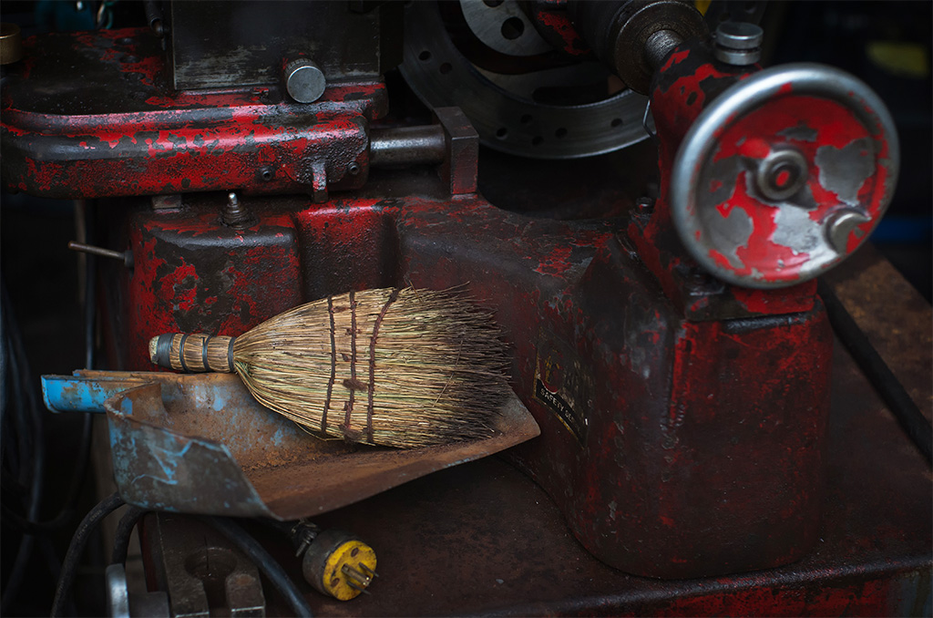 I did manage to take a photo of this really cool old garage on the south side of Pittsburgh. The owner was just locking up when I strolled by. He saw that I had my camera and said that lots of people like to photograph his garage, understandably. He said he had to go, otherwise he would let me look around inside where he had more old signs and equipment. I thanked him and said maybe I could catch him at another time. As he left I peered into the window and snapped a shot of the brush and oily machine.