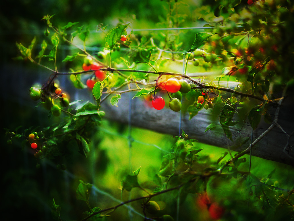 While I was browsing through some older files I came across some shots that I did last year of some berries. Out of about 20 different shots, I chose one I liked at the time and that was the end of it. I didn’t think about the other photos since. But while I was looking at the photos I saw that I had two shots where the camera (well, I’ll go ahead and blame the camera ;-)) mistakenly focused on the background for the first shot and the second shot was focused on what I wanted in the first place, the berries in the foreground. I didn’t consider either shot a keeper but they still remained in my files.