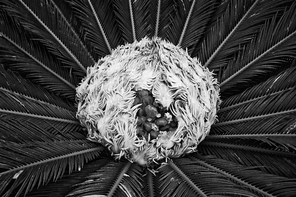 This is, what I believe, a sago palm. Exotic looking, by all accounts, for a Pennsylvanian and that’s why it probably caught my eye as I was walking past it during my visit to South Carolina. I was struck by the sheer size of the seed pod and the fanning of the fronds which were perfect leading lines to my main subject – the very alien looking pod!